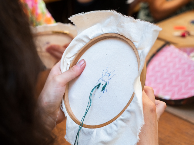 Peur de ne pas la terminer pendant l’atelier ? Aucun problème, vous repartez avec le fil nécessaire, une fiche explicative et le plein de conseils pour finaliser votre broderie.